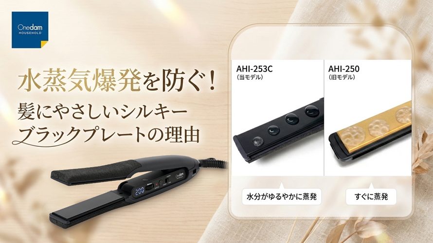 毎日のスタイリングで気になる、毛先のパサつきや蓄積ダメージ。 ワンダムのヘアアイロン The PREMIUM(AHI-253C)が採用する「シルキーブラックプレート」は、なぜ髪を傷めにくいと言われているのでしょうか。 そのヒミツは、熱の伝わ […]